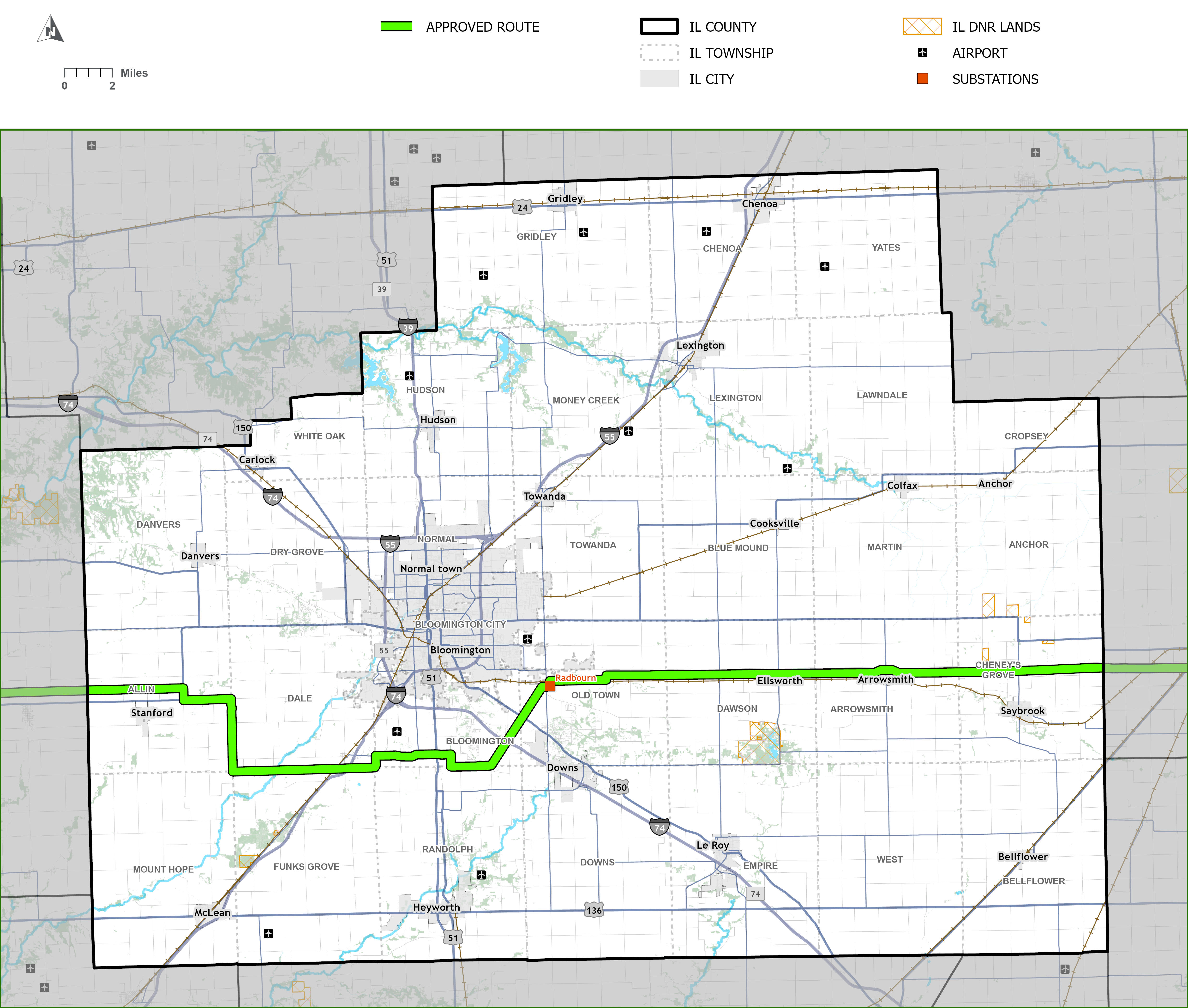 The Approved Route has approximately 50 miles of new and upgraded transmission lines in McLean County.