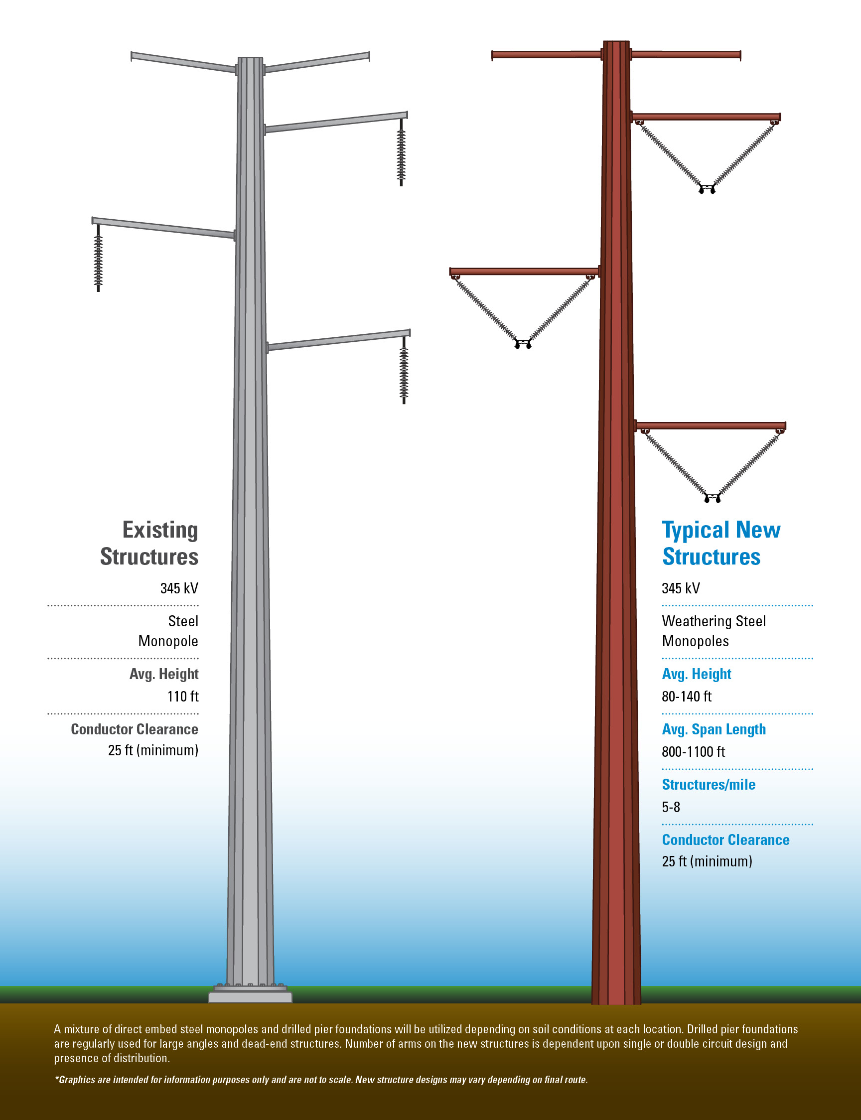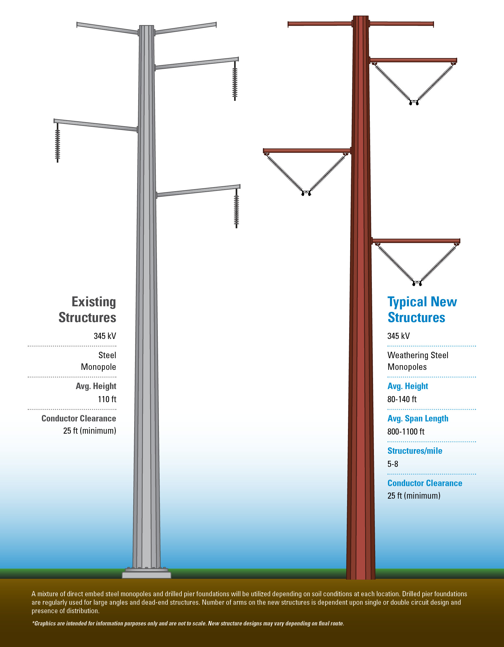 The Approved Route has approximately 12 miles of upgraded transmission lines on existing structures to carry additional energy.